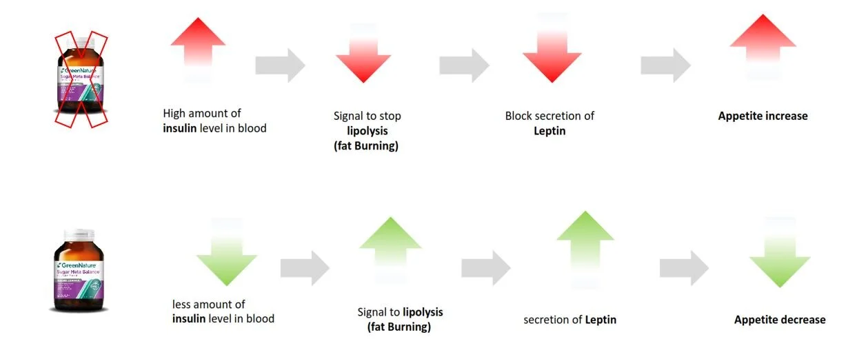 How Sugar Meta Balance® Acting to stop Overeating Mechanism and burning more Fat :